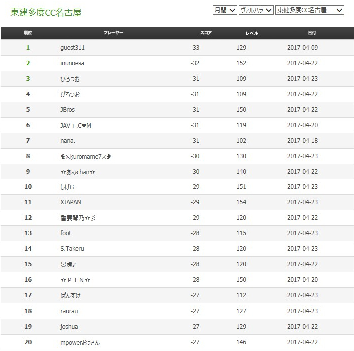 今回の名誉がどーのこーのの公式大会はスキル200そこそこあればロングが届く東建多度名古屋コースです。