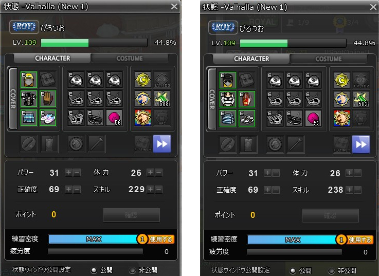 今更ですがLV108と比較するとステータスは+38ものUPです^^v