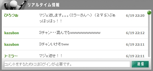 仕方がないので寝ようかな、と思ったら、、、 お友達がリアルタイム情報に一言! 「マジェ返せ!!」 (≧∇≦)ぶぁっはっはっ!! ワタクシ的には無茶苦茶受けました!! あまりに可笑しくて、ついご返事。。。 おかげさまで書き込み初体験! 寝よっと・・・。 |