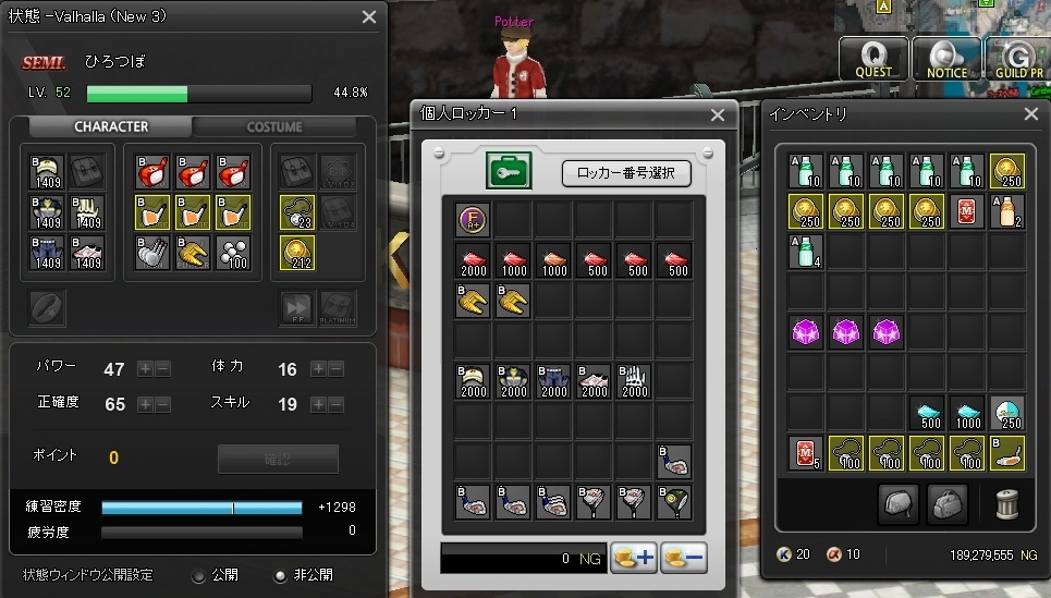 会員権(8日間)+マジェ3.5倍(250回×2)+経験値パタ(50%+20%)+リストバンド(15%)+経験値ボール(15%)+密度(2回)でお釣りがきました。