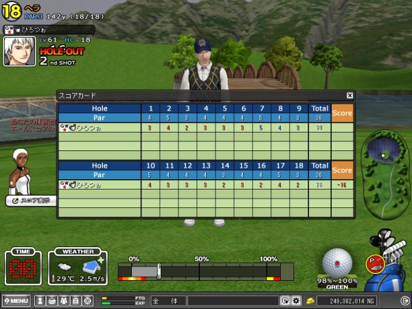残り1日は来週のお楽しみに確保! ⊂((〃 ̄ー ̄〃))⊃ ふふふ ところで新しく出来たディープフォレスト! 通称 森! 現在、このコースに夢中です。 1つのコースをこんなにチャレンジするのはSOをやり始めた頃のアルプ三昧以来かも知れません^^; これまでは多少距離を残しても出来るだけ平坦なFWから2オンを狙っていましたが、この森コースはそうはいきません。 FWは凸凹で狭くセミハード裸婦、悪天候、高低差多数、砲台GRと傾斜が急、等々 特に前半の1,6,7,8、後半はどのホールも難しいです。 コレといった攻略法もなく、「前回はコレで失敗したような?」程度の記憶を頼りにアタックしています。 今日は平日・・・ お友達もいないし、森を目一杯楽しむ予定です。 当面は2桁アンダーが目標! 偶然に偶然が重ならないかなぁ・・・。 |