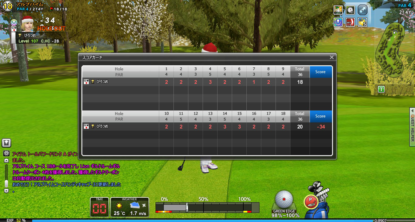 このコンペは実によく考えられたコンペだと思いました。 通常のコンペと同じようにLV帯によるハンディキャップはあるものの、スコアーはラウンド毎に提出と破棄を選べるし(提出は3回まで)、破棄ラウンドでも1ラウンドあたり-0.2の回数ハンデがプラスされていくし、それ故いっぱい廻って同伴者とのコミュニケーションも豊かになるし、なんつーか、一発逆転を狙ってもよし、コツコツとラウンドを重ねてスコアーUPを図るもよし、まさに言うこと無し、今のSOにピッタンコのコンペでした! ぴろは幸いにも好成績を収めることができましたが、それ以上にラウンドしていて楽しいコンペでした。 こういう感じのコンペはSO公式大会では味わえません。 あと、GOLF★WAYメンバーも参加させていただき、この場を借りまして厚くお礼を申し上げます。 ありがとうございました~! (追記) 次は100ラウンドこなして-20のハンディキャップを頂戴しよう! → 友録数ゼロ決定・・・。 〓■●バタッ〓■●バタッ |