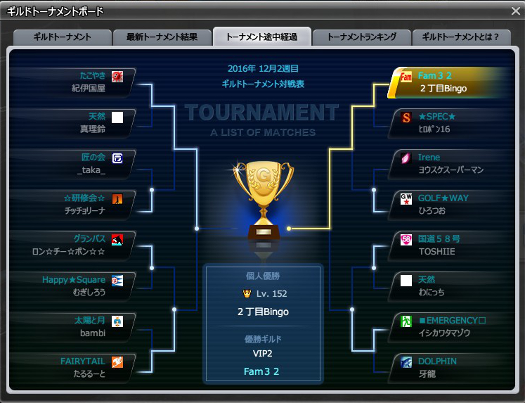 先週、広場で運営さんとお話しできる機会がありましたので、ギルドトーナメントで落ちてしまう不具合について情報提供しました。
