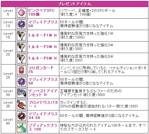 3つのキャンペーンがありますが、LV5おきにアイテムがもらえるレベルアップキャンペーンが一番の魅力ですよネ♪