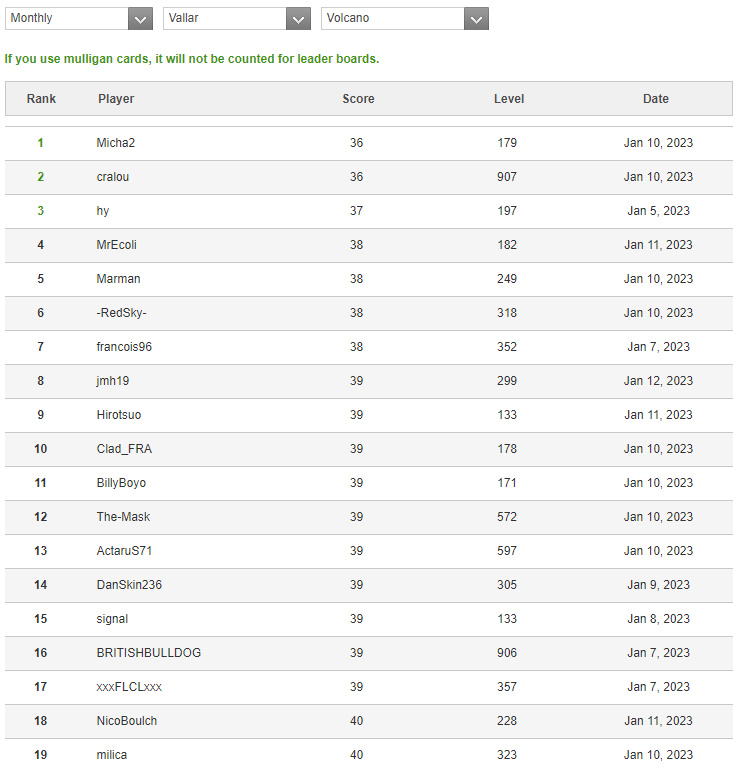signalが5位、Hirotsuoはトップ目が無くなって途中放棄。