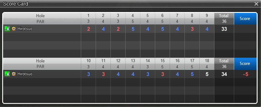 翌日、Hirotuoも何回もチャレンジしてやっとこさの、-5。